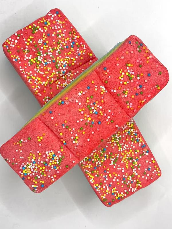 Macios, Fofos e Cheios de Magia Doce! Delicie-se com uma explosão fantástica de sabor e textura com a nossa Delícia de Marshmallow Cloudcake Arco-Íris! Este guloseima de marshmallow extra macia, inspirada em bolo, combina a fofura de uma nuvem com as cores alegres de um arco-íris, criando uma mordida mágica que é tão divertida de comer quanto deliciosa.